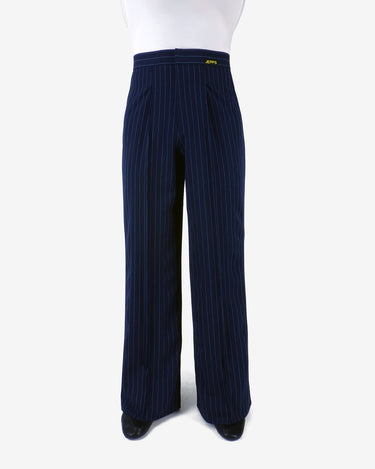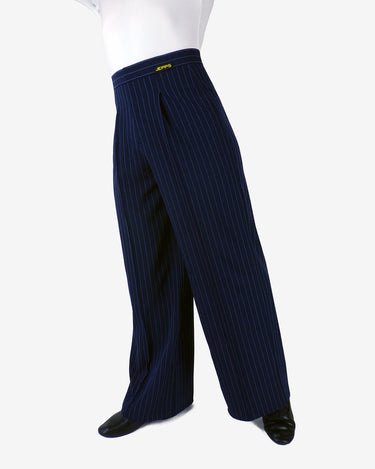 Men's Elite Wide Fit Pleated Pinstripe Pant ~ Navy / Light Blue